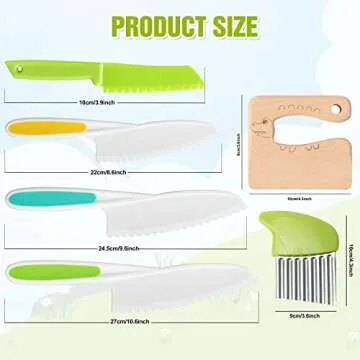 The knives are constructed from premium materials designed for both durability and ease of use. The toddler knives feature a wooden design that ensures safety and functionality for budding cooks, while the serrated knives are made from resilient plastic, making them easy to manage. The potato slicer, equipped with a sturdy iron handle and plastic components, withstands the test of frequent kitchen use. Not only do these kitchen tools inspire joy while preparing meals, but they also make prepping safe and reliable, allowing your child to express themselves creatively through cooking.