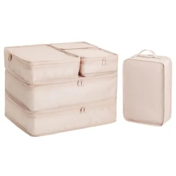 6-Pack Cream Travel Packing Cubes - Lightweight, Durable & Breathable