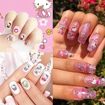 Show more Introducing our 6 Sheets Cute Nail Art Stickers, the ultimate decoration tool for nail enthusiasts! Perfectly designed for girls and women of all ages, these adorable nail decals feature a variety of super cute cartoon designs that add personality and flair to any manicure. From playful kittens to colorful motifs, each sheet is packed with delightful stickers that are easy to use and safe for on nails. Whether you're preparing for a fun family vacation or simply want to brighten your daily look, these nail stickers are a fantastic choice to express your style.