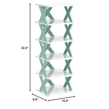6 Tier Narrow Shoe Rack, Small Vertical Shoe Stand, Space Saving DIY Free Standing Shoes Storage Organizer for Entryway, Closet, Hallway, Easy Assembly and Stable in Structure, White and Green