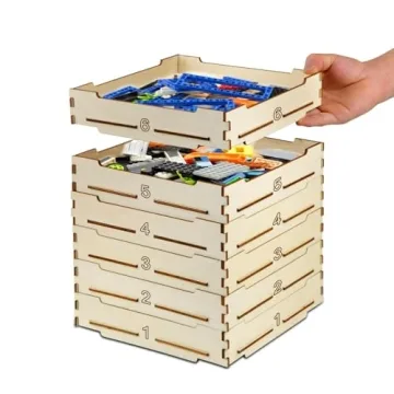 Show moreDiscover the perfect harmony of fun and function with the 6 Tray Sorter Sifter Box. Designed for Lego enthusiasts of all ages, this innovative storage solution ensures a delightful experience while managing your favorite building blocks. Each box comes complete with 6 stackable trays and 5 different size sorters that cater to every kind of Lego block, whether you’re organizing Lego flowers, city sets, or Technic cars. Crafted from 100% Basswood Plywood, it not only brings organizational bliss but also champions eco-friendliness, allowing you to indulge in endless play without any guilt!