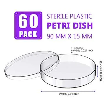 60 Pack Sterile Plastic Petri Dishes with Lid, 90mm Dia x 15mm Deep (90MM-60PACK)