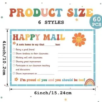 60 Pcs Retro Groovy Happy Mail Teacher Notes to Parents Classroom Good Behavior Incentive Motivational Cards Positive Postcards to Send Home for Home Classroom Preschool Kindergarten Elementary School