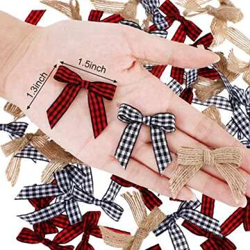 60 Pieces Christmas Mini Bows for Crafts Small Craft Bows Mini Buffalo Plaid Bow Red and Black Checkered Bows Gingham Ribbon Bows Farmhouse Home Decoration for Christmas Tree DIY Crafts, 3 Colors