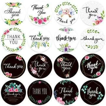 600 PCS Thank You Stickers Fresh Black & White Style Round Labels Stickers in 16 Designs with Perforation Line for Personal and Business Use (Each Measures 1.5" in Diameter)
