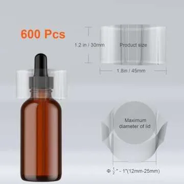 Show more Introducing the 600Pcs Shrink Wrap for Bottles Bands Jars, the ultimate sealing solution for your packaging needs! Each pack comes with an impressive 600 pieces of high-quality shrink bands designed for essential oil bottles, droppers, and test tube bottle caps. Measuring 1.8 x 1.2 Inches (45x30mm), these transparent shrink wraps not only enhance the presentation of your products but also provide essential protection against tampering and contamination. Made from durable PVC, they boast a remarkable shrinkage rate and offer exceptional moisture resistance, ensuring safety and longevity for your valuable contents.