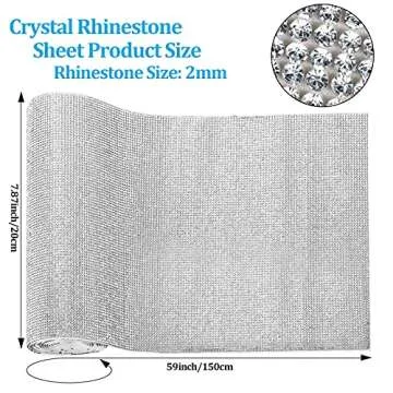 Show more This stunning bling rhinestone crystal sheet is the perfect addition to any creative project that needs a touch of sparkle! Measuring an impressive 59 x 7.87 inches (1.5m x 20cm), this expansive sheet features approximately 60,750 dazzling rhinestones, each at 2mm in size. Whether you're looking to add bling to clothing, homemade accessories, or festive decorations, this product has everything you need to transform your ideas into sparkling realities.