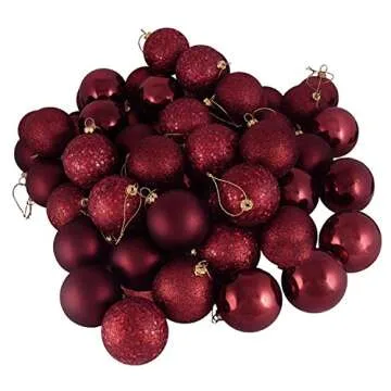 Show moreTransform your holiday décor with the stunning 60ct Burgundy Shatterproof Christmas Ball Ornaments. Crafted in a versatile 2.5-inch size, these ornaments feature a luxurious burgundy color that effortlessly enhances your Christmas tree or festive display. With a robust shatterproof design, they are perfect for households with children or pets, providing both elegance and durability. The pack includes an array of four distinct finishes, including glossy, matte, and frosted, so you can create a beautiful visual texture that will impress family and guests alike.