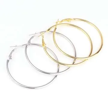 60mm Big Round Endless Hoop Earrings For Women (yellow gold)