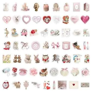 60PCS Coquette Stickers,Pink Coquette Aesthetic Stickers Decal,Vinyl Waterproof Stickers for Water Bottles Laptop Computer Phone Guitar