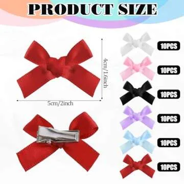 60Pcs Mini Cute Bow Hair Clips, Hair Bows for Girls, Bow Ribbons Hair Accessories, Mini Small Bow Hair Clips, Satin Mini Bow Clips, Small Hair Clips Solid Color Hair Ribbon Alligator Clips, 6 Color