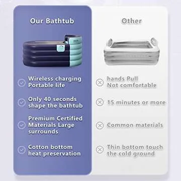 When compared to traditional bathtubs and other inflatable options, this 61 Inch Inflatable Bathtub showcases remarkable benefits. Unlike most competitors, it offers quick inflation and exceptional comfort without the compromise of space or stability. Many alternatives lack proper insulation and drainage features, making this model not just easier to set up but also more efficient to use. It truly stands out with its thoughtful design details, such as the integrated phone pocket and adjustable backrest that enhance the overall experience.