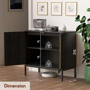 63" Black Sideboard Buffet Cabinet with Hand-Woven Natural Rattan Doors, Rattan Cabinet Console Table, Cane Sideboard Storage Cabinet Accent Credenza, for Living Room Hallway & Kitchen-2 Pieces