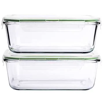 63 Oz 2 Pcs Large Glass Food Storage Containers 8 Cups Family Size Set Baking Containers with Locking Lids Storing food, BPA Free Leak Proof Microwave Oven Safe (2, 63 OZ)