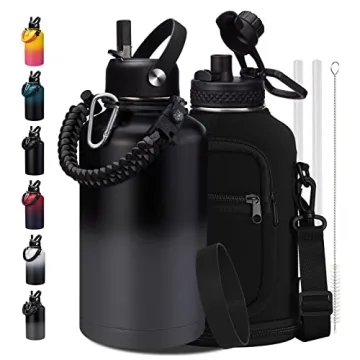 This bundle includes not only the water bottle but also nine essential accessories to enhance your experience. You receive two BPA-free lids: an auto spout lid for quick one-handed sipping, and a straw lid that allows for spill-proof sipping, with a straw designed to prevent ice cube inhalation. Additional features include a paracord handle with survival gear—including a compass, whistle, and flint, making this hydration companion perfect for any adventure. Also included is a shoulder strap carrier bag, which has two zippered pockets for your essentials and provides additional insulation.