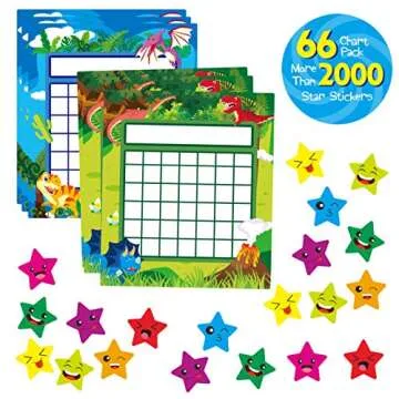 66 Pack Teacher Incentive Reward Chart Dinosaur World with 2024 Star Stickers