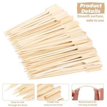 6Inch Bamboo Skewers for Appetizers,100Pcs Bamboo Paddle Picks,Wooden Appetizer Skewers for Fruit Kabobs,Wide Flat Paddle Bamboo Wood Picks for Cocktail,Barbecue Snacks,Fondue,Marshmallow