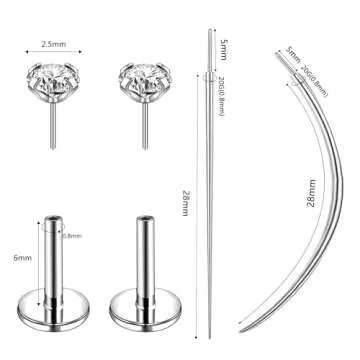 Understanding size matters, this versatile set caters to various preferences with gauge sizes of 18g/20g (1.0mm/0.8mm). Featuring CZ top diameters of 2mm, 2.5mm, 3mm, and 4mm and post length options of 5mm, 6mm, and 7mm, you can mix and match to perfectly align with your individual style. Whatever the occasion, you can curate the ideal combination of piercings that truly reflects who you are.