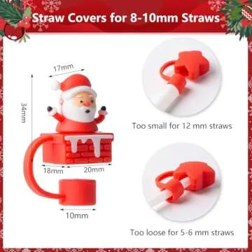 6Pcs Christmas Red Straw Cover Cap for Stanley Cup 40oz/30oz Tumbler, 10mm Reusable Cute Drinking Straw Topper Accessories, Portable Protector Plugs Decorations Gifts for Party Christmas