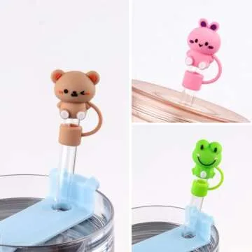 6Pcs Cute Animals Alpaca Straw Covers Cap for 30&40 Oz Stanley Cups, Silicone Straw Toppers Cap for All 9-10mm Drinking Straws
