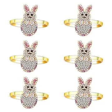 6PCS Enamel Egg Bunny Napkin Rings Set for Dinner Table Decor