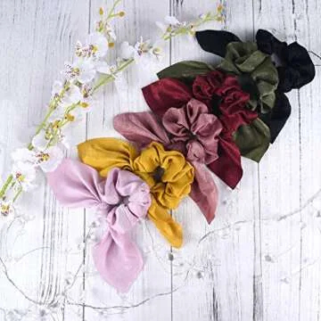 6PCS Hair Scrunchies Satin SilkRabbit Bunny Ear Bow Bowknot Scrunchie Bobbles Elastic Hair Ties Bands Ponytail Holder for Women Accessories 01 Classic color