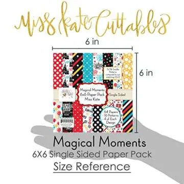 Show moreIntroducing the **6x6 Pattern Paper Pack – Magical Moments** by Miss Kate Cuttables! This premium specialty paper collection is designed for scrapbooking, card making, and a variety of craft projects. With **64 single-sided sheets**, each measuring 6"x6", you'll find a delightful assortment of **16 different enchanting patterns**, all with **4 sheets of each design**. The vibrant, high-definition prints feature whimsical themes like polka dots, balloons, fireworks, cameras, castles, and more — perfect for celebrating those joyful vacation memories and special occasions.
