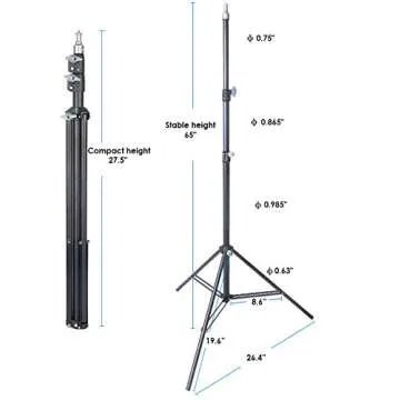 When comparing the **7 Foot Tripod Aluminum Compact Photography Light Stand** to similar products on the market, it stands out due to its exceptional build quality and thoughtful design. Many competitive models are either too heavy to carry efficiently or lack the stability required for heavy setups. With its professional-grade aluminum construction and user-friendly height adjustments, this stand delivers enhanced stability while remaining lightweight, making it an ideal choice for both amateurs and professionals alike.