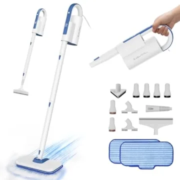 Show moreIntroducing the 7 in 1 Steam Mop with Attachments, your ultimate cleaning companion designed to make household chores not only easier but also more efficient! Featuring a powerful 1200W heating element, this versatile steam mop can heat up in just 20 seconds, providing a rapid and effective solution for tackling tough dirt, grime, and stubborn stains at an impressive temperature of 266℉. What truly sets this steam mop apart is its incredible ability to transform into a handheld steam cleaner with ease, offering the flexibility to clean hard-to-reach areas. With 8 interchangeable cleaning heads, this mop becomes an all-in-one cleaning solution, ensuring that everything from wooden floors to carpets, from windows to upholstered furniture, receives the care it deserves.