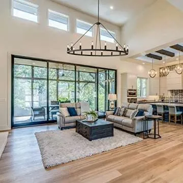 7 PANDAS 50 inch Wagon Wheel Chandelier, 16-Lights Modern Farmhouse Island Light Industrial Country Style Large Round Rustic Chandeliers Lighting for High Ceilings Dining Room, Dark Brown