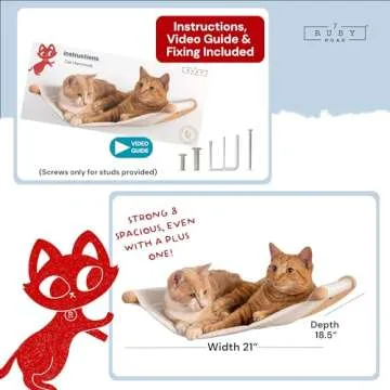 Introducing the revolutionary 7 Ruby Road Wall Mounted Cat Wall Hammock, designed for both comfort and style! This massive 21-inch hammock is more than just a cat bed; it's a luxurious retreat for your feline friends, whether they're playful kittens or regal adult cats. Made from high-quality, durable natural wood, this wall-mounted cat bed ensures a safe, snug, and secure space for your cats while preserving your home decor's elegance. The hammock not only keeps your furniture safe from...