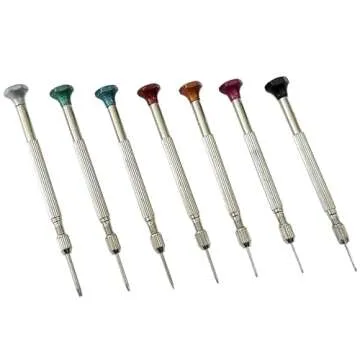 Show moreThe 7 Piece Watchmakers Screwdriver Set is an essential tool kit for both professional watchmakers and enthusiastic hobbyists alike. Crafted with precision, this set features standard flat blade screwdrivers that are expertly designed with reversible ground and tempered blades ensuring durability and reliability for intricate watch repairs. Each screwdriver is equipped with a swivel head for ease of use, allowing for smooth adjustments without damaging the screws. The colour-coded and anodised heads not only enhance the visual appeal but also aid in easy identification of sizes, making your repair tasks more efficient.