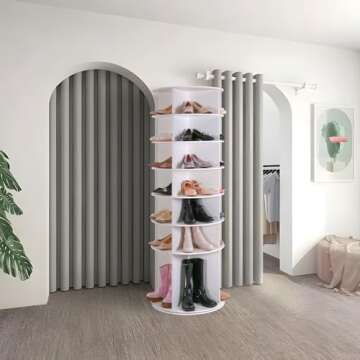 Why You Will Love This Product:Organizing your footwear has never been so stylish and enjoyable! This shoe rack doesn’t just save space; it enhances your home’s aesthetic, allowing your shoe collection to shine. With every spin of the rack, you'll feel a sense of pride in your organized collection and the streamlined look it brings to your space. It’s not just a product; it’s a lifestyle upgrade that promises to keep your home looking its best.