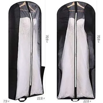 70" Bridal Wedding Gown Garment Bag Extra Large Foldable Portable Travel Dress Cover Hanging Luggage with Pockets for Womens, 8" Gusseted Black