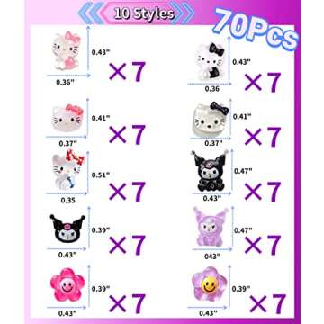 70 PCS Kawaii Nail Charms - Adorable Decor for Stunning Nails