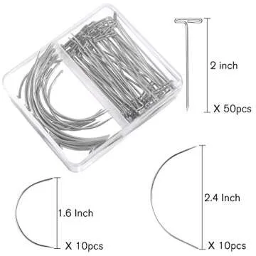 70 Pieces Wig Making Pins Needles Set, Wig T Pins and C Curved Needles Hair Weave Needles for Wig Making, Blocking Knitting, Modelling and Crafts