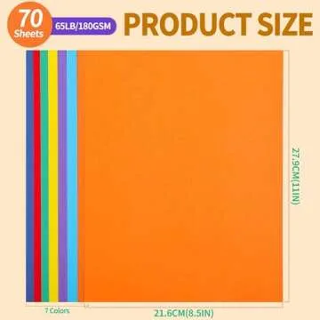 70 Sheets Colored Cardstock -7 Colors Paper 8.5 x 11 inch Art Crafts Construction Paper 65Ib/180g Thick Card Stock Paper for Printer, DIY Cards Making, Scrapbooking UAP01