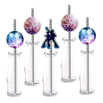 70s Disco Straw Decor, 24-Pack Dance 1970s Birthday Party Decorations, Paper Decorative Straws