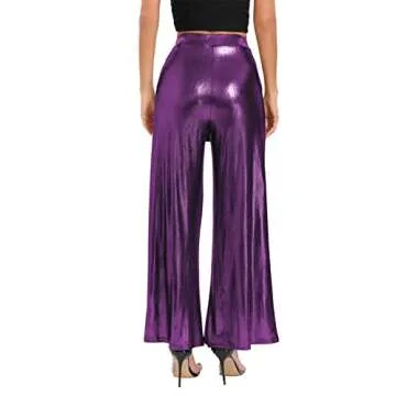Show more Step into the groove with our *70s Outfits for Women Sparkly Disco Outfit*! These fabulous purple palazzo pants are designed to take you back to the vibrant disco era with a touch of modern flair. Crafted with a loose and comfortable fit, these high-waisted, wide-leg pants add a dramatic silhouette to your ensemble that is both chic and casual. With a stunning sparkle that captures the light, you'll be the life of any party, from club nights to casual gatherings.