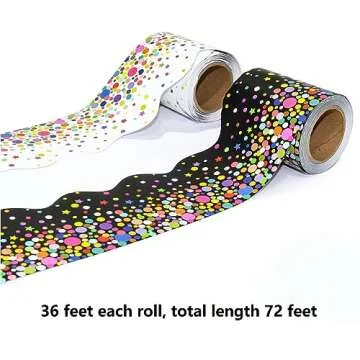 72 Feet Bulletin Board Borders - 2 Rolls Confetti Scalloped Border Trim for Classroom Decoration