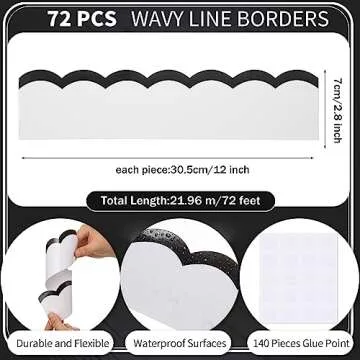 72 Feet Classroom Bulletin Board Borders Black and White Wavy Line Scalloped Border Trims Black and White Bulletin Board Stripes for Classroom Bulletin Boards Back to School Wall Desk Locker Decor