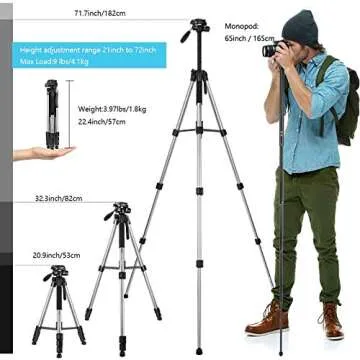 - Tripod & Monopod Capability: Quickly convert from a tripod to a **65-inch monopod** or selfie stick in seconds for those spontaneous shot opportunities.