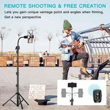 74" Flexible Phone Tripod, Tall Cell Phone Tripod with Adjustable Gooseneck & Remote, Portable Phone Stand Tripod for Video Recording, Overhead Cellphone Tripod, Compatible with iPhone Android