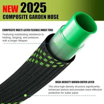 Show more Introducing the Insbbier 75 ft Garden Hose, a revolutionary upgrade in the world of gardening tools that combines durability, flexibility, and functionality like never before. This hose is ingeniously designed with a woven outer fabric cover and a nano-composite inner tube, tackling the perennial issues of kinking and tangling that plague traditional hoses. The lightweight structure at just 3.9 lbs makes it incredibly easy to handle, whether you are watering your garden or washing your car. The state-of-the-art features ensure that you can look forward to enjoyable and hassle-free gardening, letting you focus on your plants rather than struggling with heavy hoses.