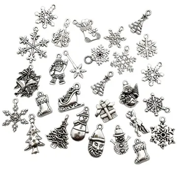 Show more Introducing our **75 pcs Mixed Craft Supplies Christmas Tree Snowflakes Deer Bell Stocking Charms Pendants**, the perfect addition to your jewelry-making toolkit! Crafted from high-quality **zinc alloy**, these charms are both durable and beautifully designed, ensuring they will enhance all your handmade creations. With sizes ranging from **10-40mm**, you'll find the ideal pieces for necklaces, bracelets, and other DIY projects. Each set includes **75 unique charms**—three of each design—with delightful motifs like **Christmas trees**, **snowflakes**, and **bells** that will inspire your festive creativity.