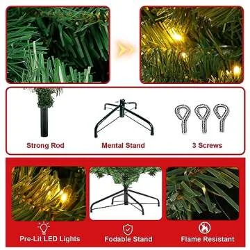 Show more Enhance your holiday experience with the 7d24hcare 6.5ft Pre-lit Christmas Tree, designed to bring the magic of Christmas right into your home. Crafted with quality in mind, this exquisite artificial tree features a radiant array of 250 warm white lights that exude a cozy glow, setting a festive atmosphere for any gathering. The meticulous construction incorporates a sturdy metal trunk and features a realistic appearance with 750 lush PVC branches, faithfully mimicking the aesthetics of a traditional spruce tree. Plus, it conveniently breaks down into three easy-to-assemble parts, allowing you to enjoy your decorations with minimal setup effort.