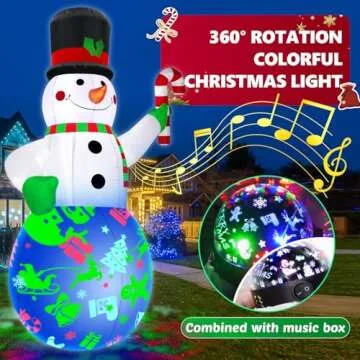 7Ft Christmas Inflatables Snowman Built-in Music Box & Rotating Colorful LED Lights, Christmas Inflatable Decoration Outdoor Blow Up Yard Decoration Snow Man for Holiday Party Xmas New Year