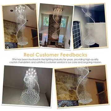 7PM Crystal Chandelier, Modern Large Spiral Raindrop Chandeliers, Flush Mount Pendant Light Fixture, Big Chandelier for High Ceiling, Entryway, Staircase, Foyer, Entrance D31.5 X H94.5