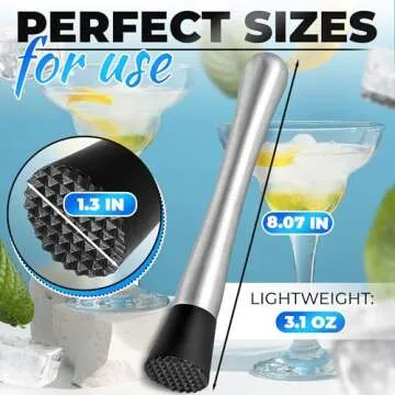 Measuring at an optimal size of 8.07 inches long and 1.3 inches in diameter, this cocktail muddler is lightweight, ensuring that it feels comfortable in your hands while you muddle herbs or fruits. The specially designed grooved nylon head is perfect for extracting flavors, oils, and juices from ingredients, allowing you to create cocktails with professionally nuanced tastes.