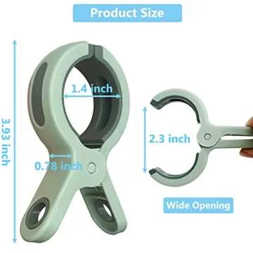 Show more Introducing the ultimate solution for securing your beach towels in style – our brilliant Towel Clips for Chairs! Crafted from the most durable thick PP material, these clips are designed to withstand the test of time and ensure you never lose your towel to the wind again. The innovative double-layer clamps are remarkably sturdier than common single-layer clips, giving you the confidence to lounge without worry. With an opening that expands up to 2.3 inches, they fit perfectly on a variety of chairs – beach, pool, lounge, or deck, making them a versatile accessory for any outdoor adventure.
